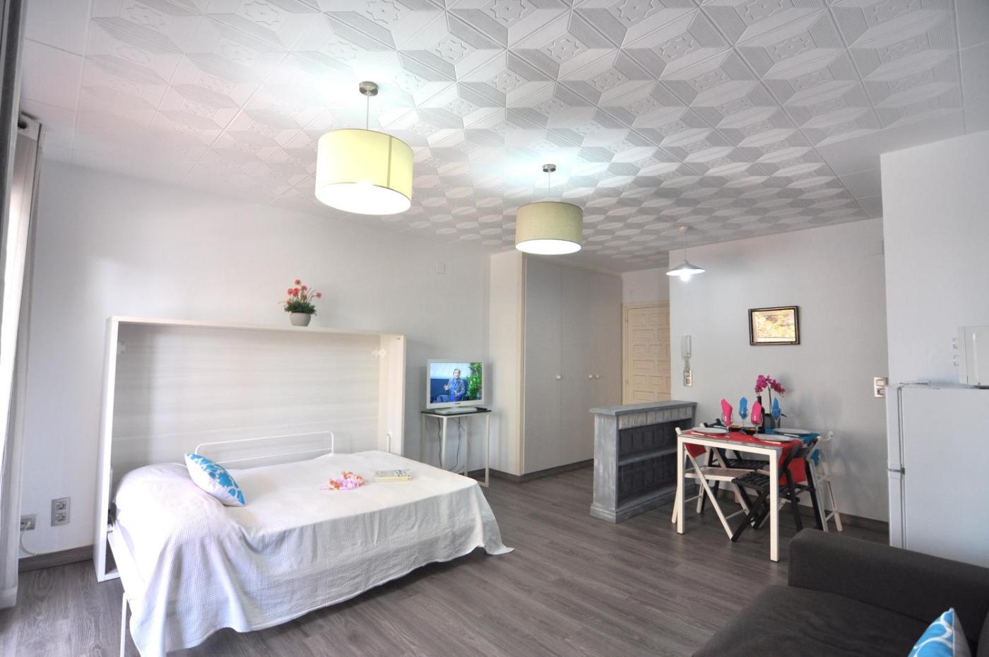 Estudio con terraza. Meals can be prepared in the kitchenette, which features a stovetop, a refrigerator, kitchenware and a microwave. This air-conditioned studio has a private bathroom, a washing machine, a tea and coffee maker as well as a terrace. The unit has 2 beds.