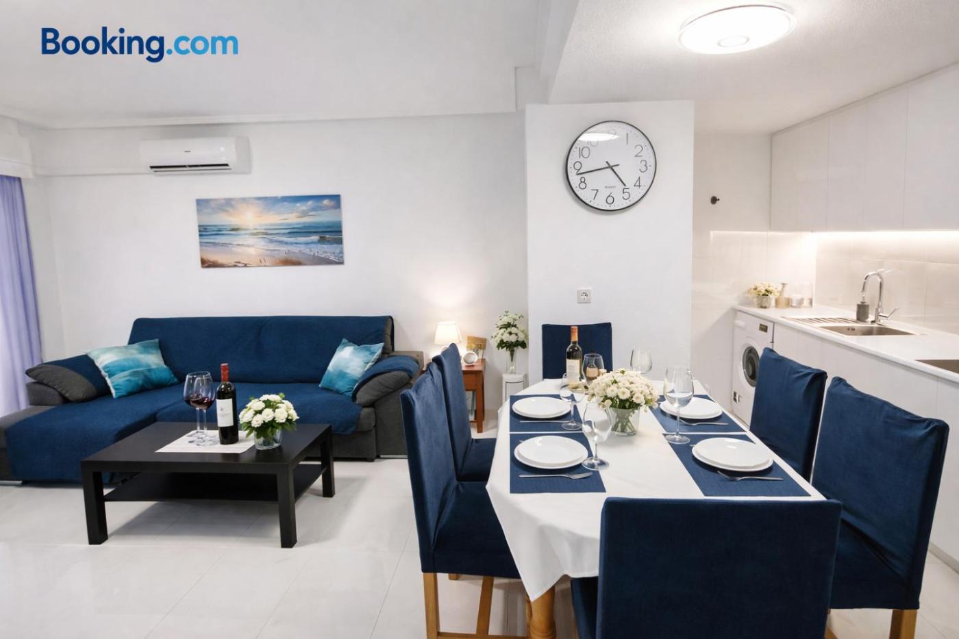 Apartamento Familiar de 2 dormitorios. This apartment includes 1 living room, 2 separate bedrooms and 1 bathroom with a bath and free toiletries. In the fully equipped kitchenette, guests will find a stovetop, a refrigerator, a dishwasher and kitchenware. The air-conditioned apartment offers a flat-screen TV with satellite channels, a washing machine, a coffee machine, a seating area as well as sea views. The unit has 4 beds.